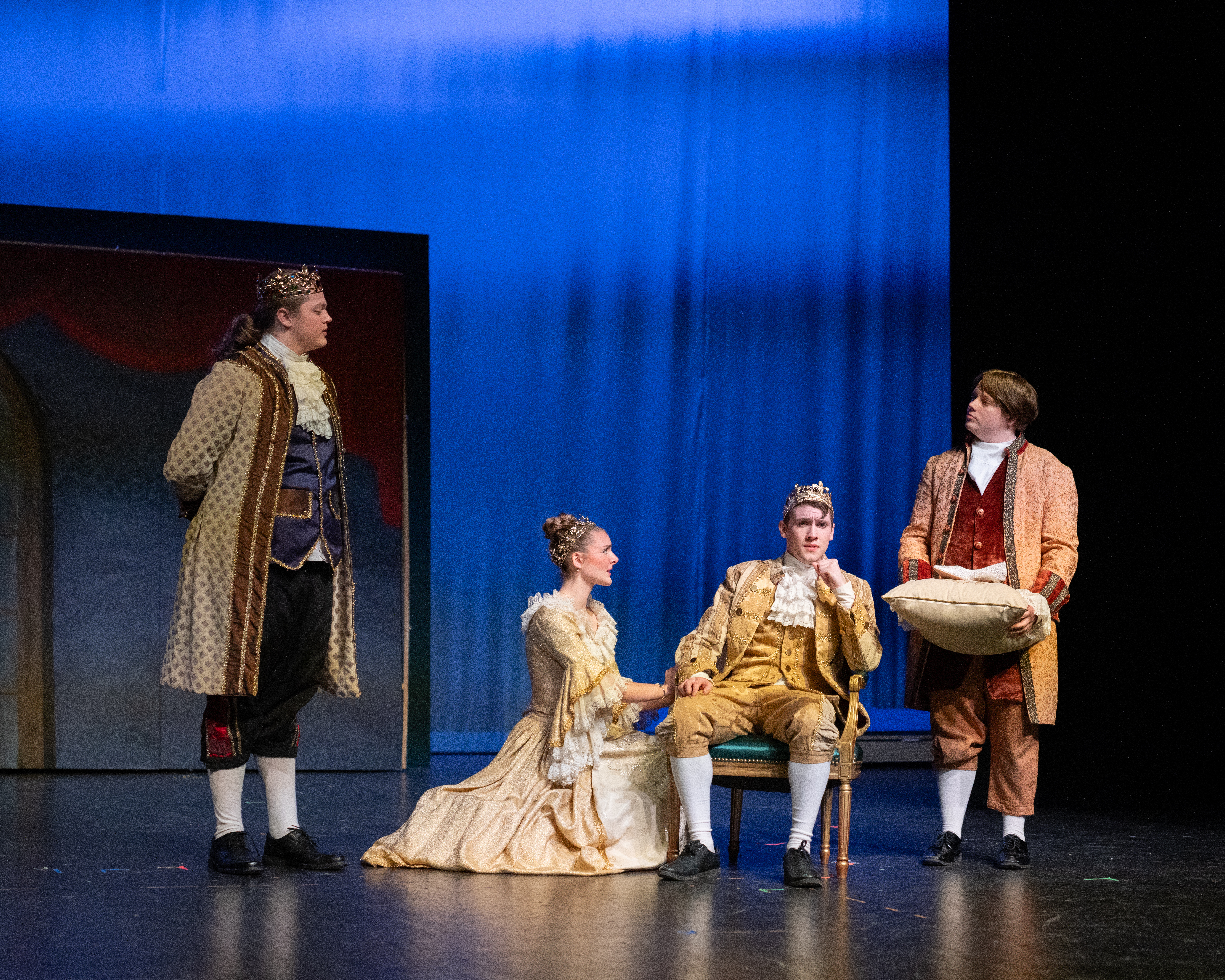 Dallen Arendt (as the Prince), Addison Schneider (as Joy), and Hailey Milligan (as Portia)