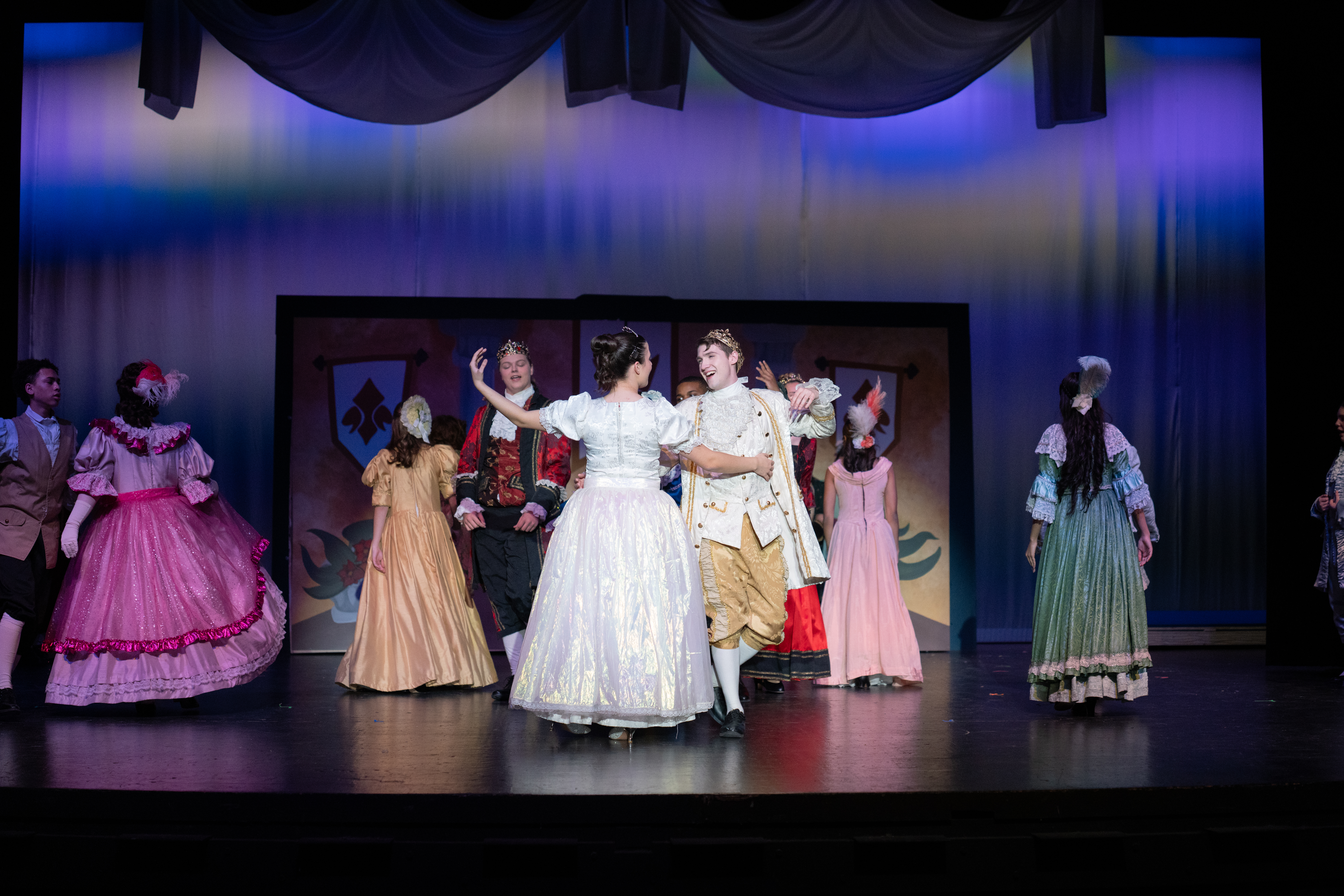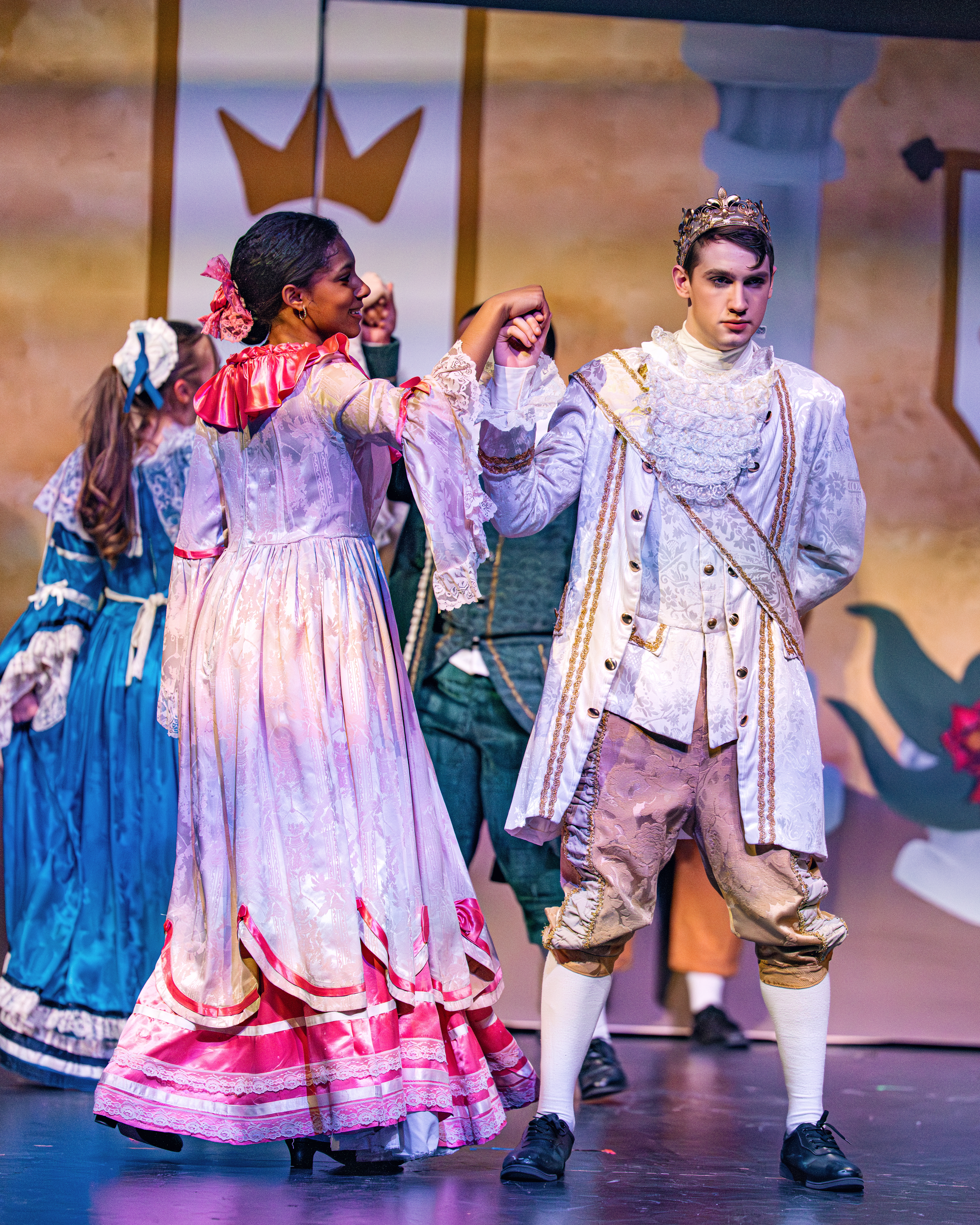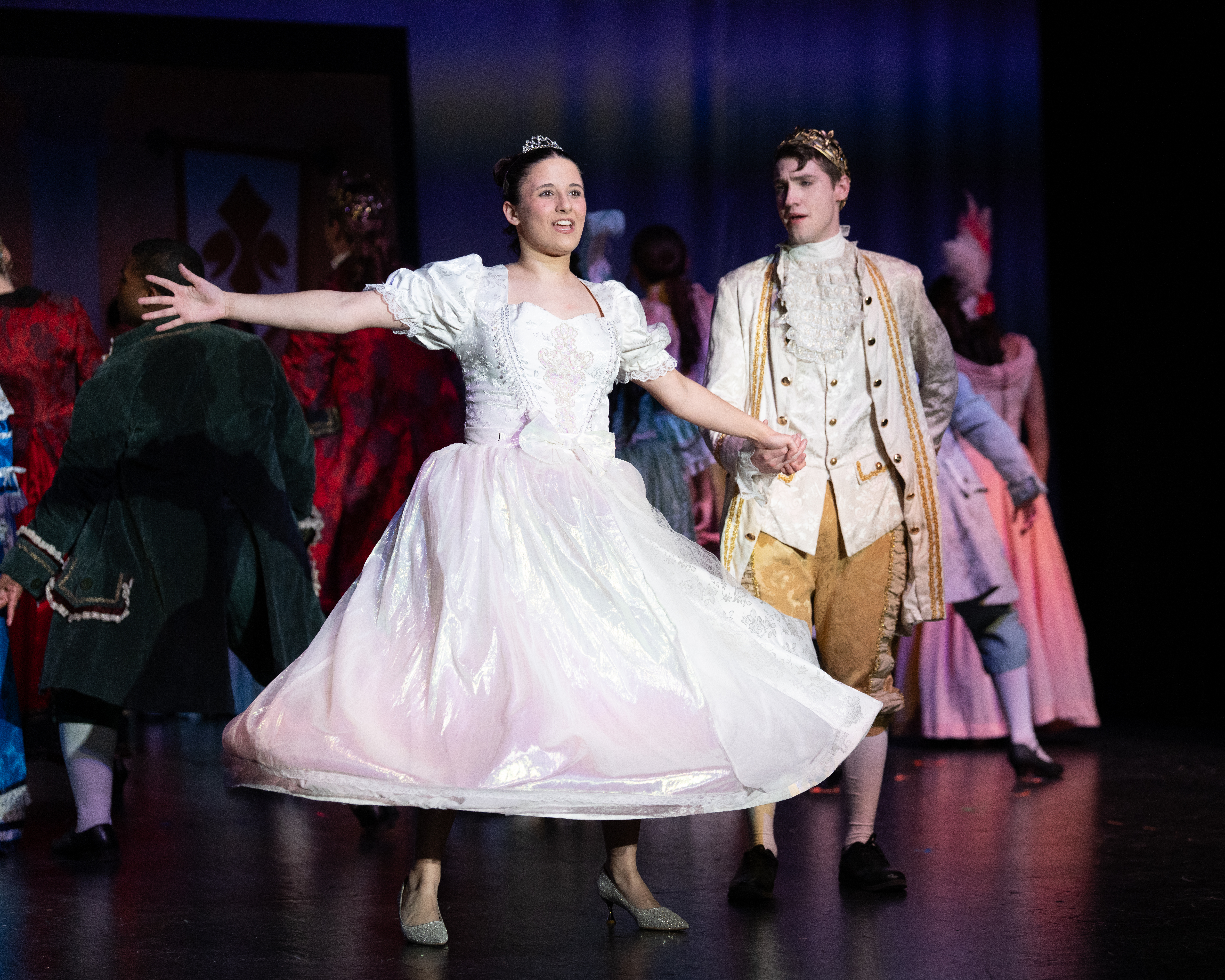 Ava Venturella (as Cinderella), Dallen Arendt (as the Prince), and the Company
