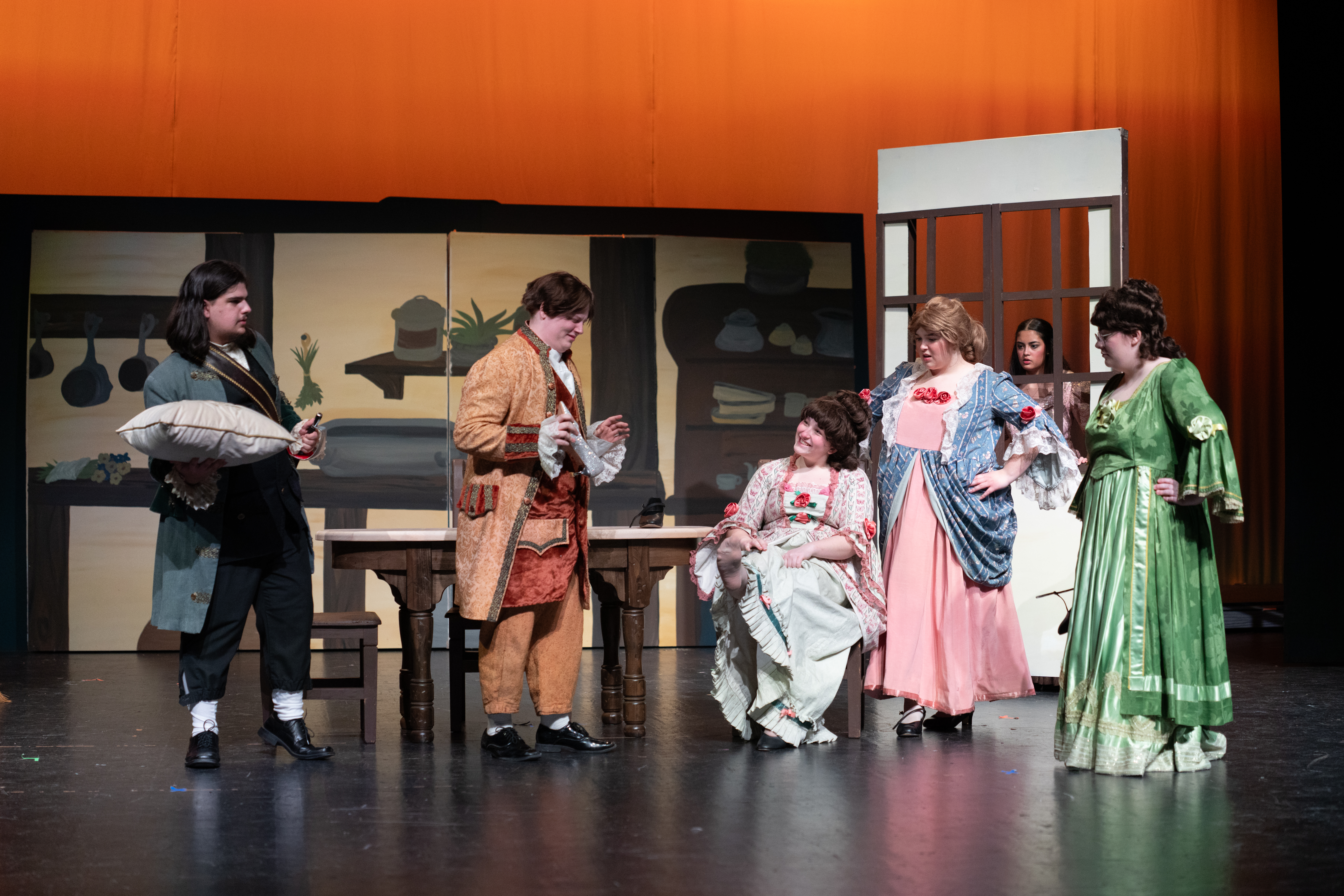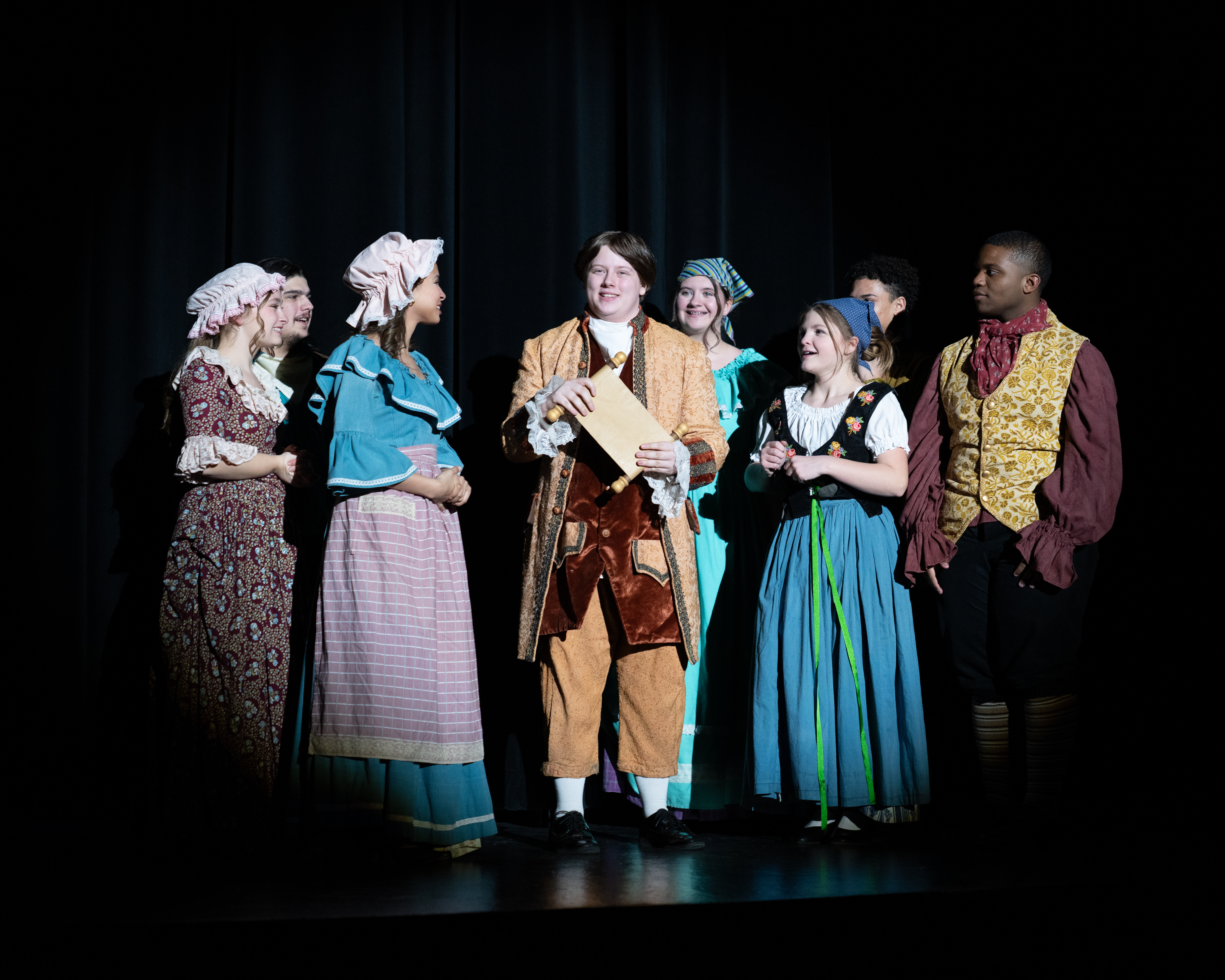 Austin Kusch, Poet Michael (as the Herald), Hailey Milligan (as Portia), Addison Schneider (as Joy), Leila Mayew (as the Godmother), and Lucinda Garrigan (as Stepmother)