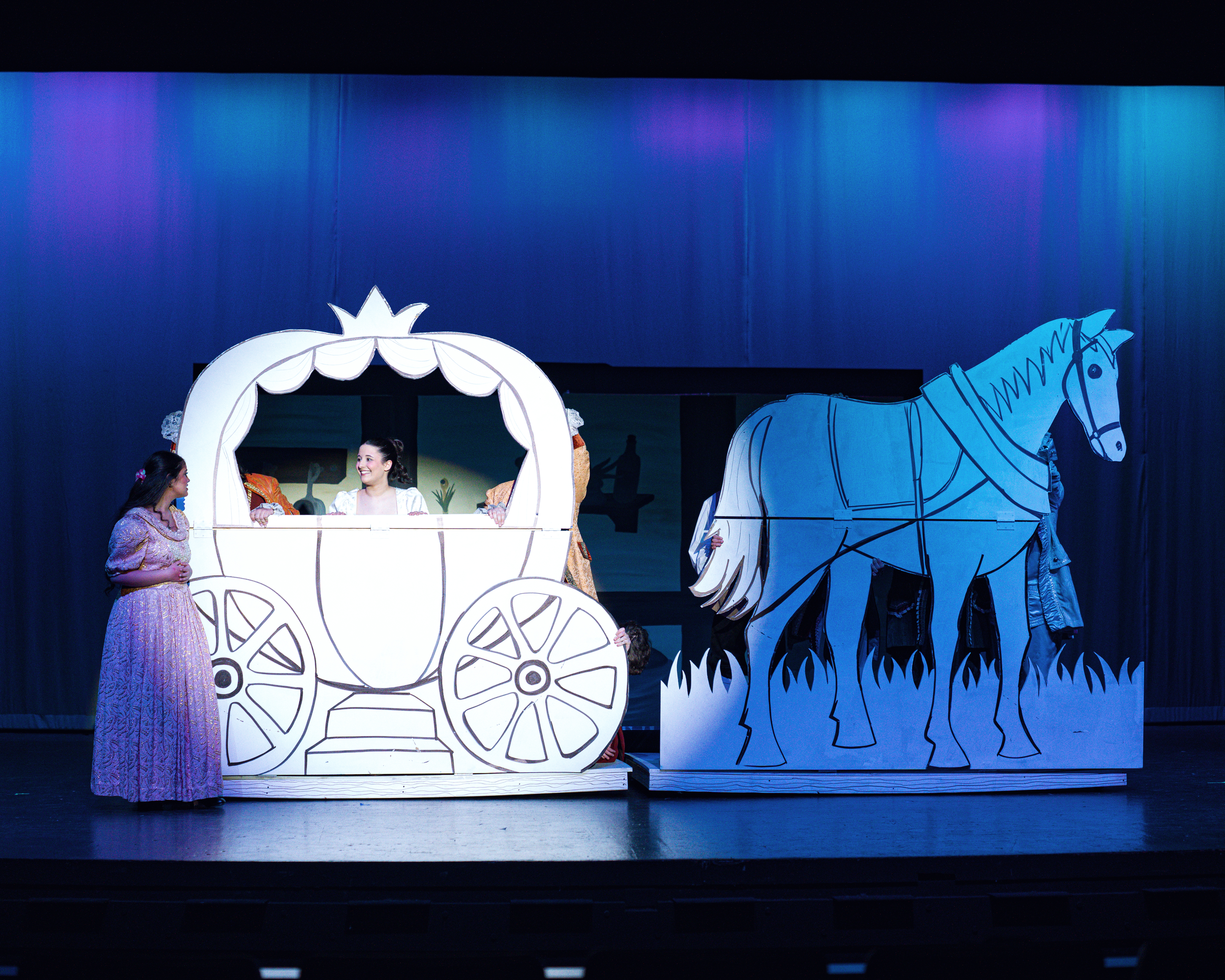 Addison Schneider (as Joy), Hailey Milligan (as Portia), Ava Venturella (as Cinderella), and Lucinda Garrigan (as Stepmother)